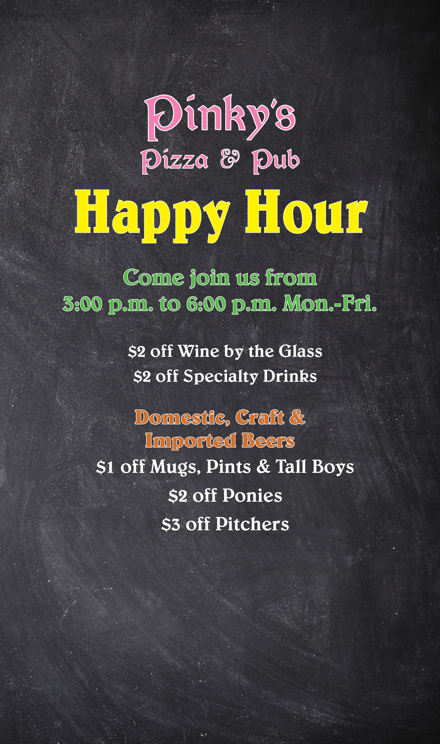 Stop by and say hello to your fellow neighbors and staff at Pinky’s for happy hour all day long!